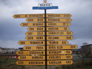 NARVIKからの各都市までの距離表示されている。