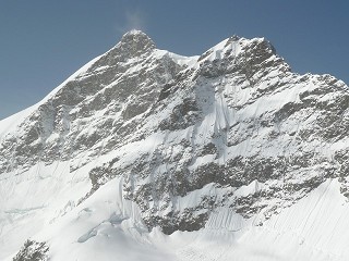 世界遺産の名峰、ベルナーオーバーラント3山 アイガー(3970m)、メイヒ(4099m)、ユングフラウ(4158m)